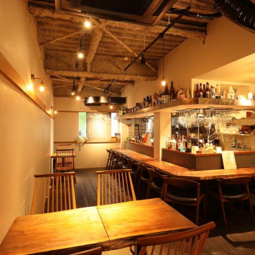 駅近ながら落ち着いた通り沿いにあり、ウッディな空間で一人でも複数人でもゆったり過ごせる空間♪